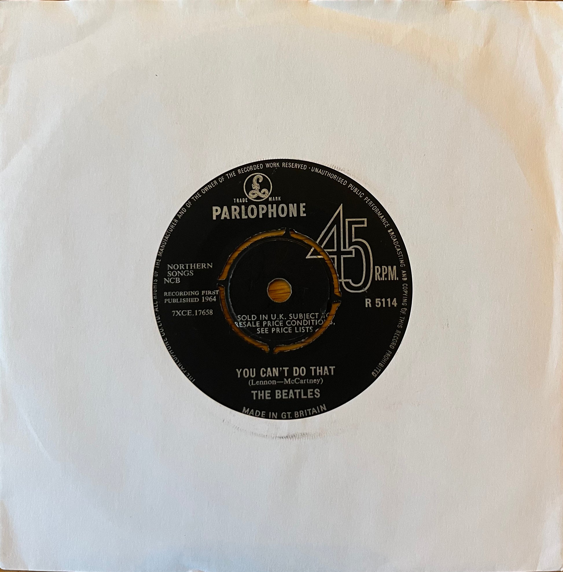 The Beatles’ upbeat 1964 chart-topper, issued here in the sought-after Oracle contract pressing. This used 7" single has been carefully inspected, play-tested, and professionally cleaned to ensure authentic vintage sound.